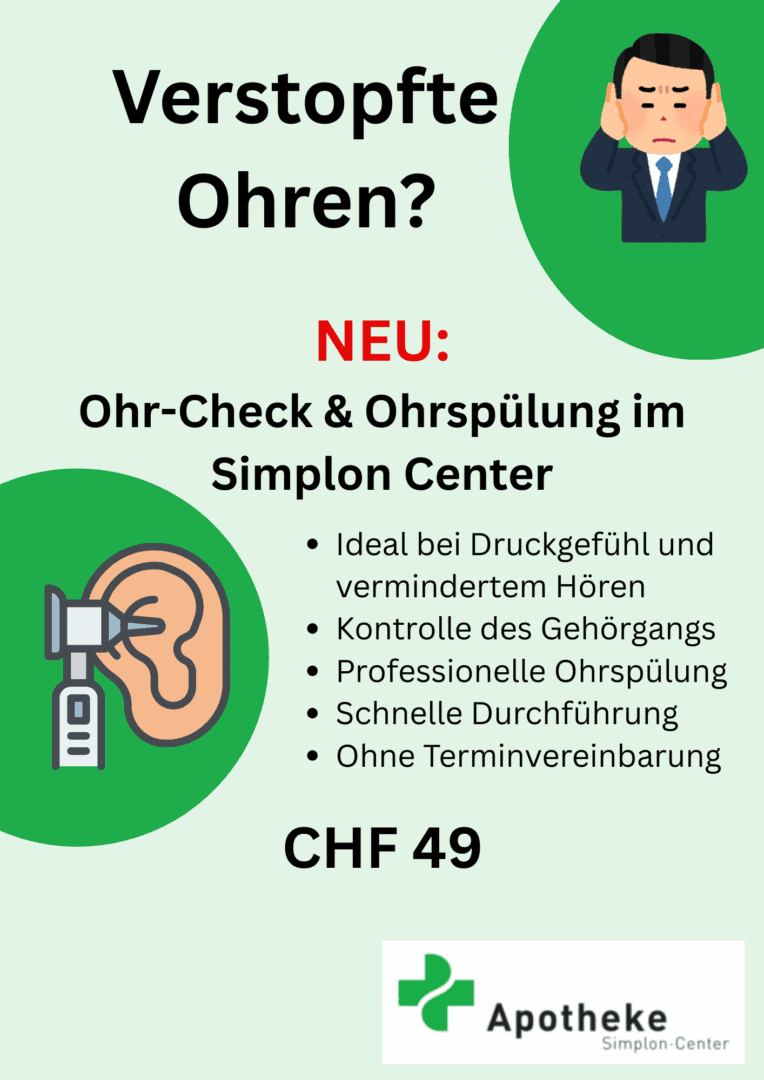 Kontrolle des Gehörgangs inklusive professioneller Ohrspülung ohne Termin für CHF 49.-